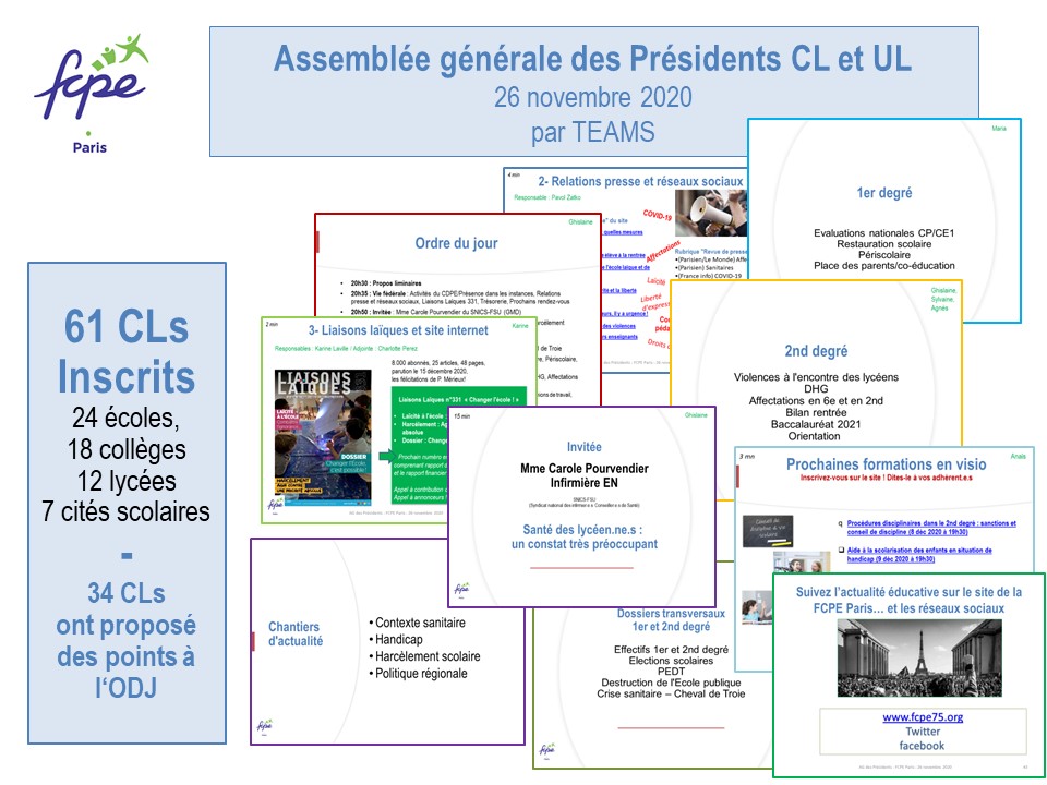 Cette première AG des présidents a permis à la FCPE Paris :